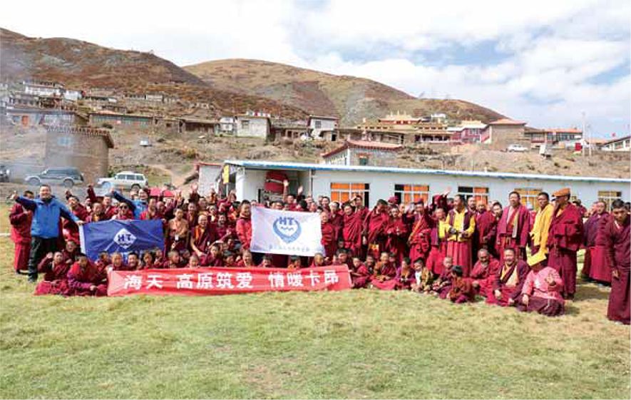 青海省卡昂民族文化学校是由一位当地藏传佛教主持在寺庙旁筹建而成,校舍为简易板房,施行免费教育。在校学生大部分为孤儿以及条件贫寒的单亲家庭,还有一部分为丧失劳动力家庭的孩子。海天集团自二零一四年起向学校提供援助,并于二零一六年由慈善基金会资助学校建设新的校舍。